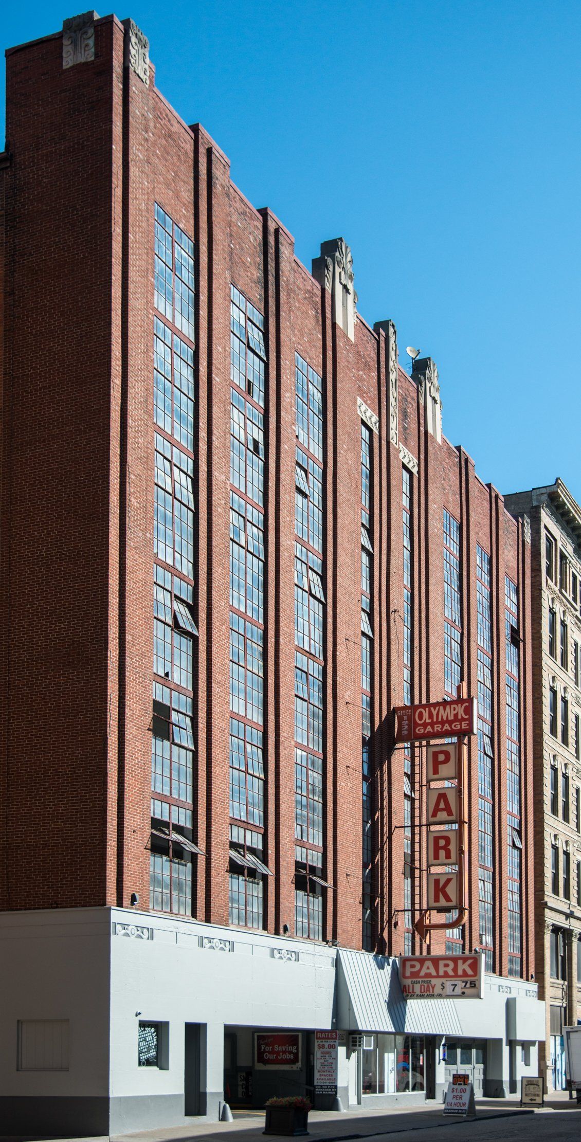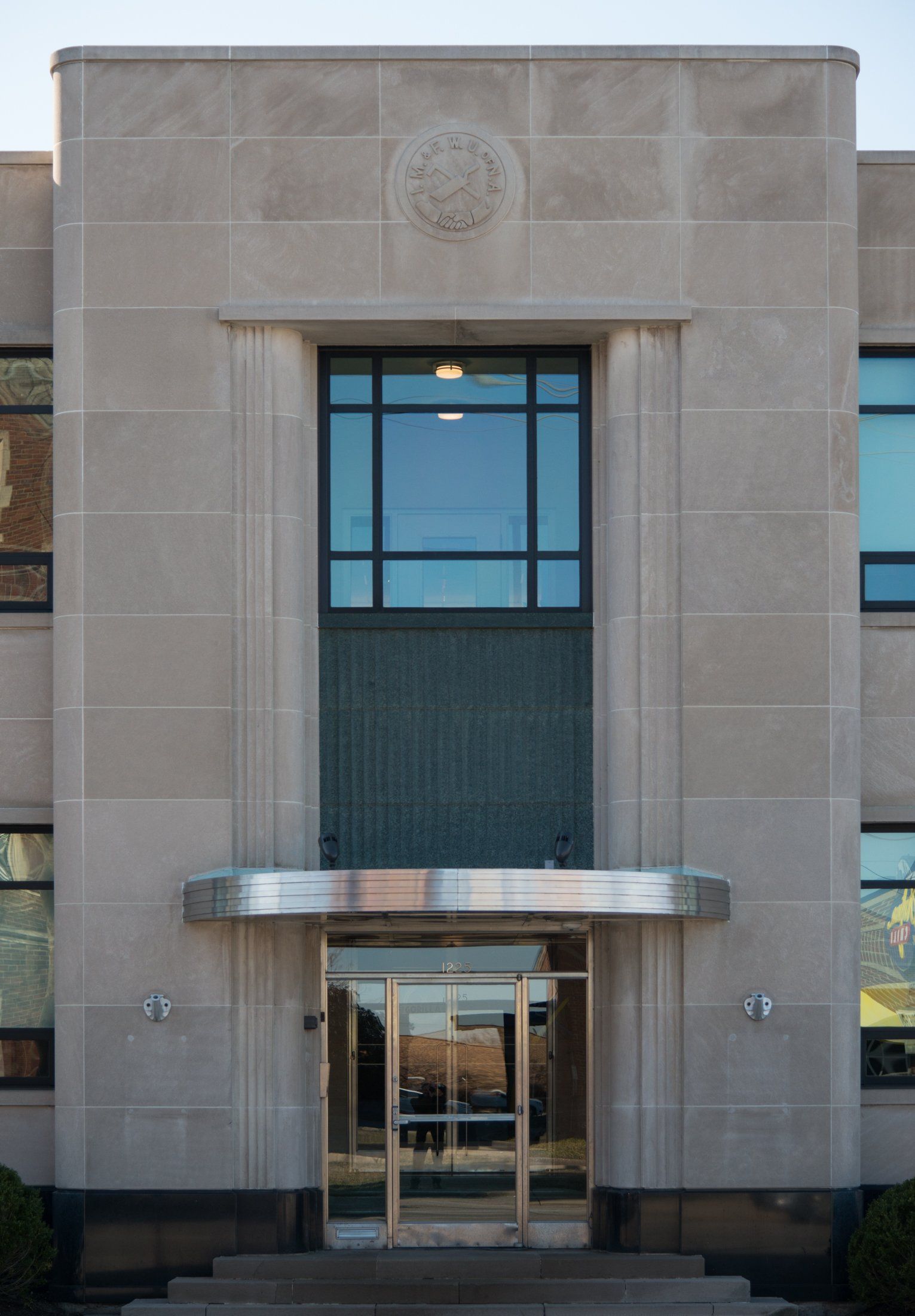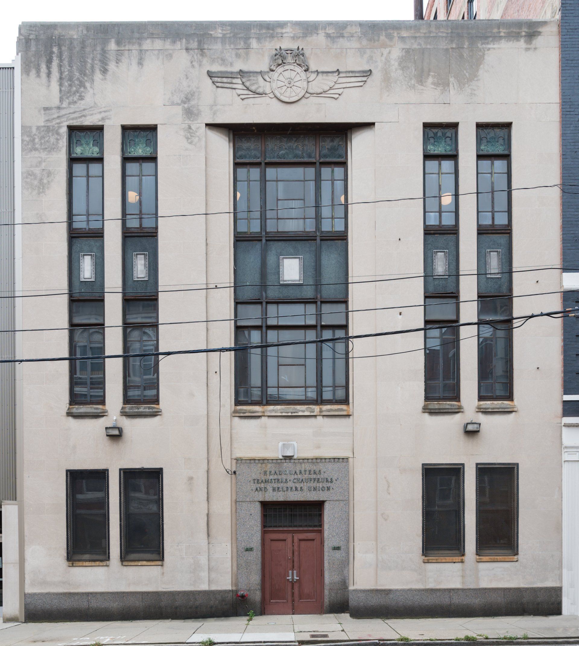 Teamsters Building, 217 West Twelfth Street, OTR: This former Teamsters headquarters is believed to be a Victorian-era structure that later received an Art Deco/Moderne limestone façade. The metal casements, spandrels, granite entry surround and Teamsters logo bas-relief all appear to hail from the mid-twentieth century