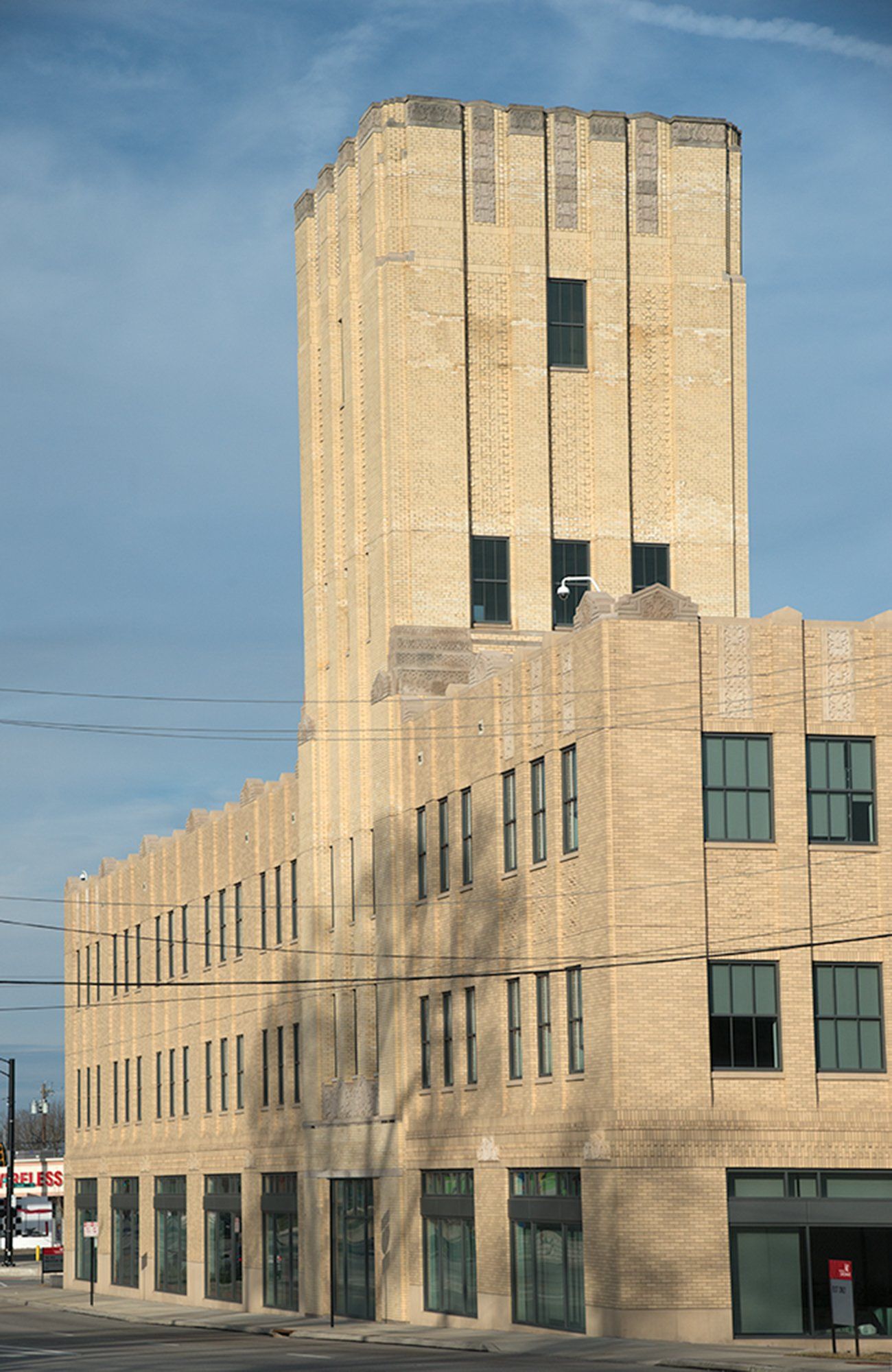 Sears & Roebuck, Avondale, 1929: The Reading Road Sears store was Cincinnati’s first on a suburban site. After years of vacancy, it was renovated by the University of Cincinnati as its new Office for Innovation, winning an award from CPA. The tower was preserved, brick stripped off and reclad, and the Art Deco ornamentation carefully duplicated. A side addition built of glass and steel expanded the building’s footprint..