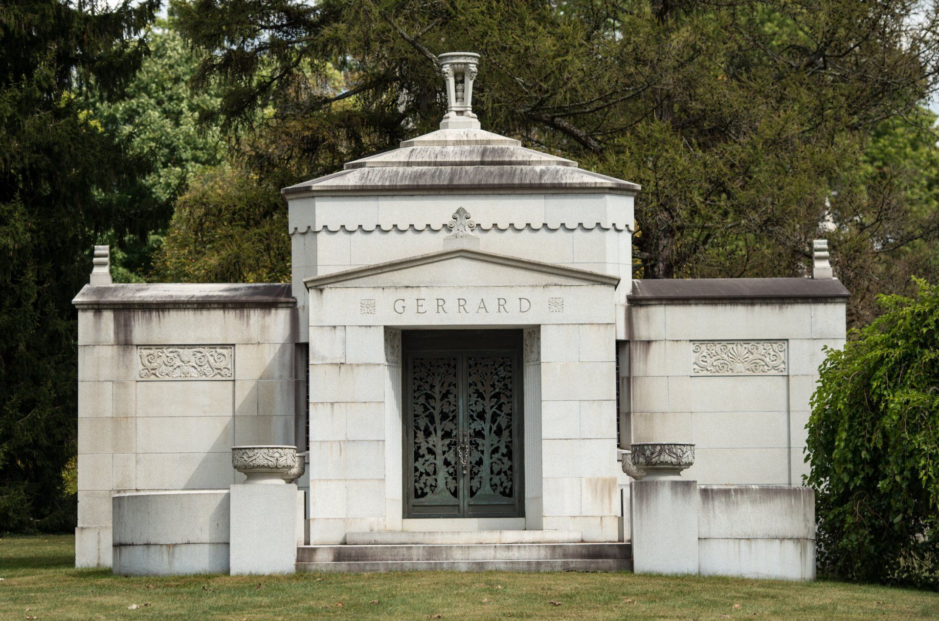 Price Hill Historical Society, 3640 Warsaw Avenue, West Price Hill: The former Provident Bank at historic St. Lawrence Corner is now the home of the Price Hill Historical Society, who restored the formerly rundown building to its Deco-style elegance. The limestone façade is adorned with simple carvings.