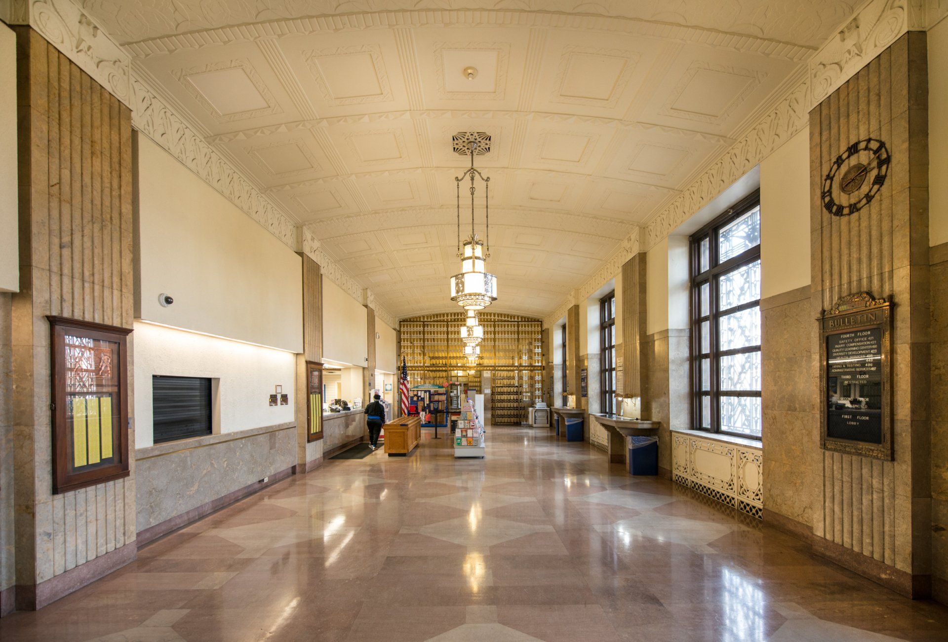In the 1980s, the building became the city’s main post office and all administrative offices were moved here. In 2018, the building underwent a much-needed restoration, including repairs to the Berea sandstone façade and replication of the original steel windows in aluminum.