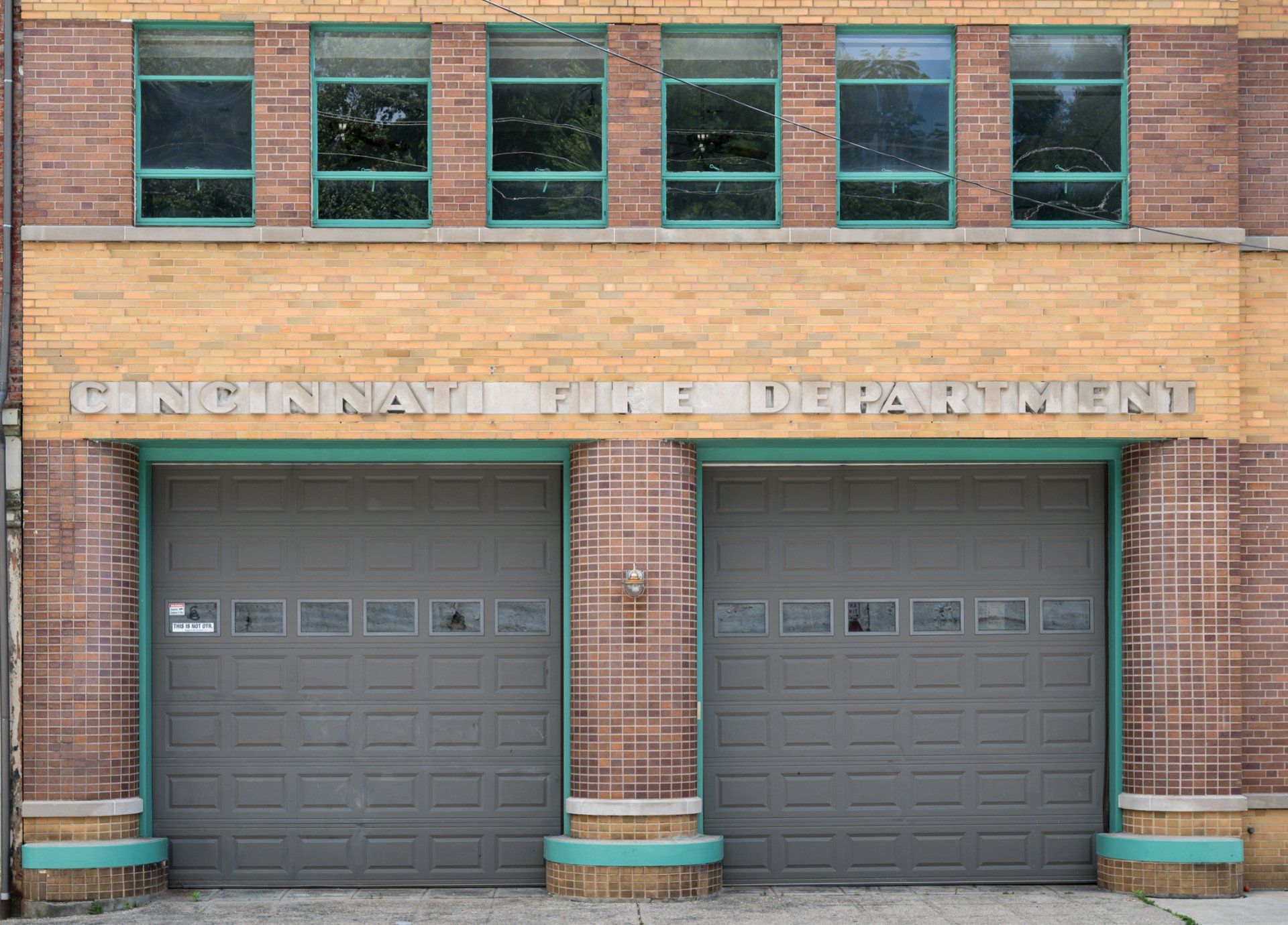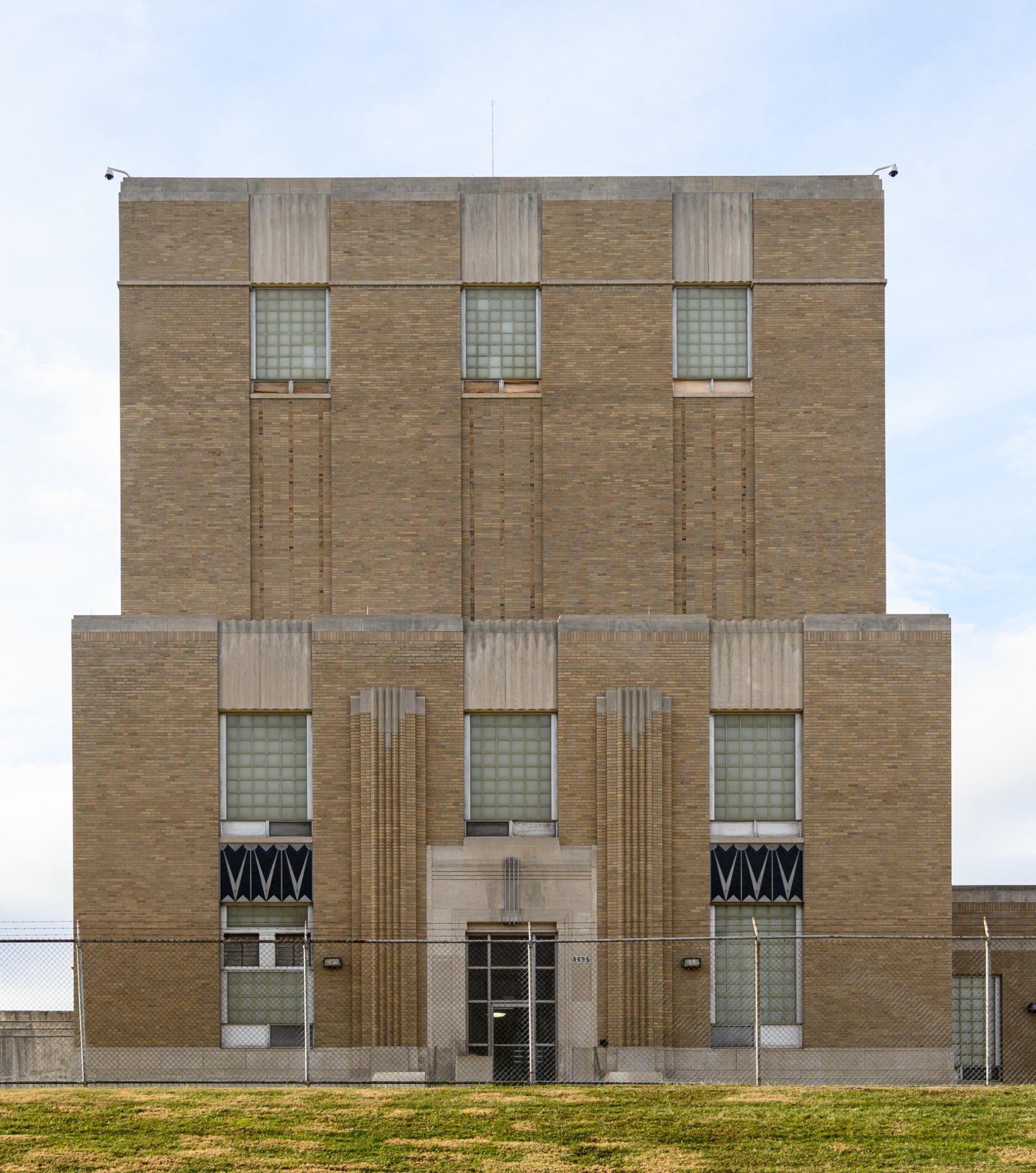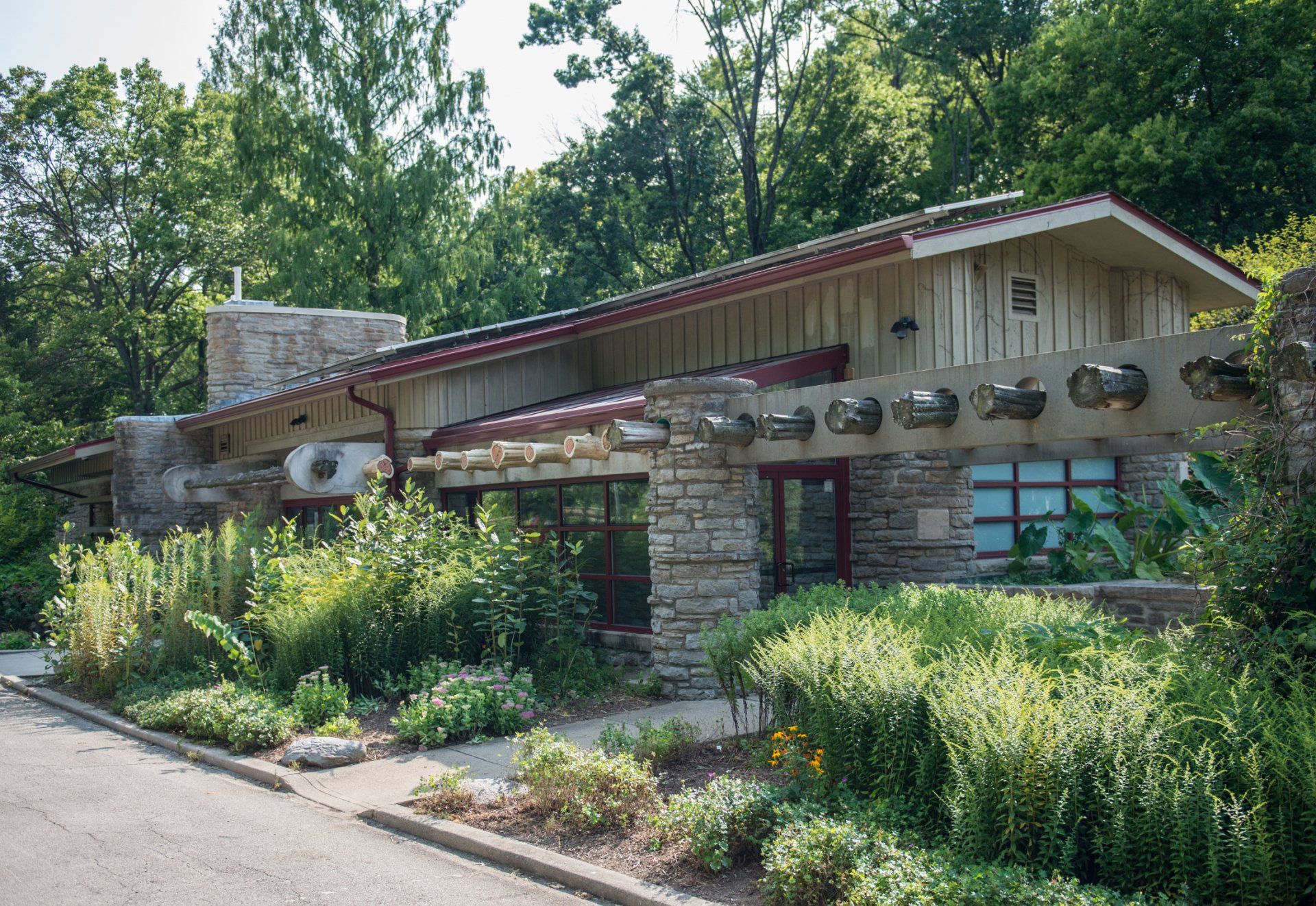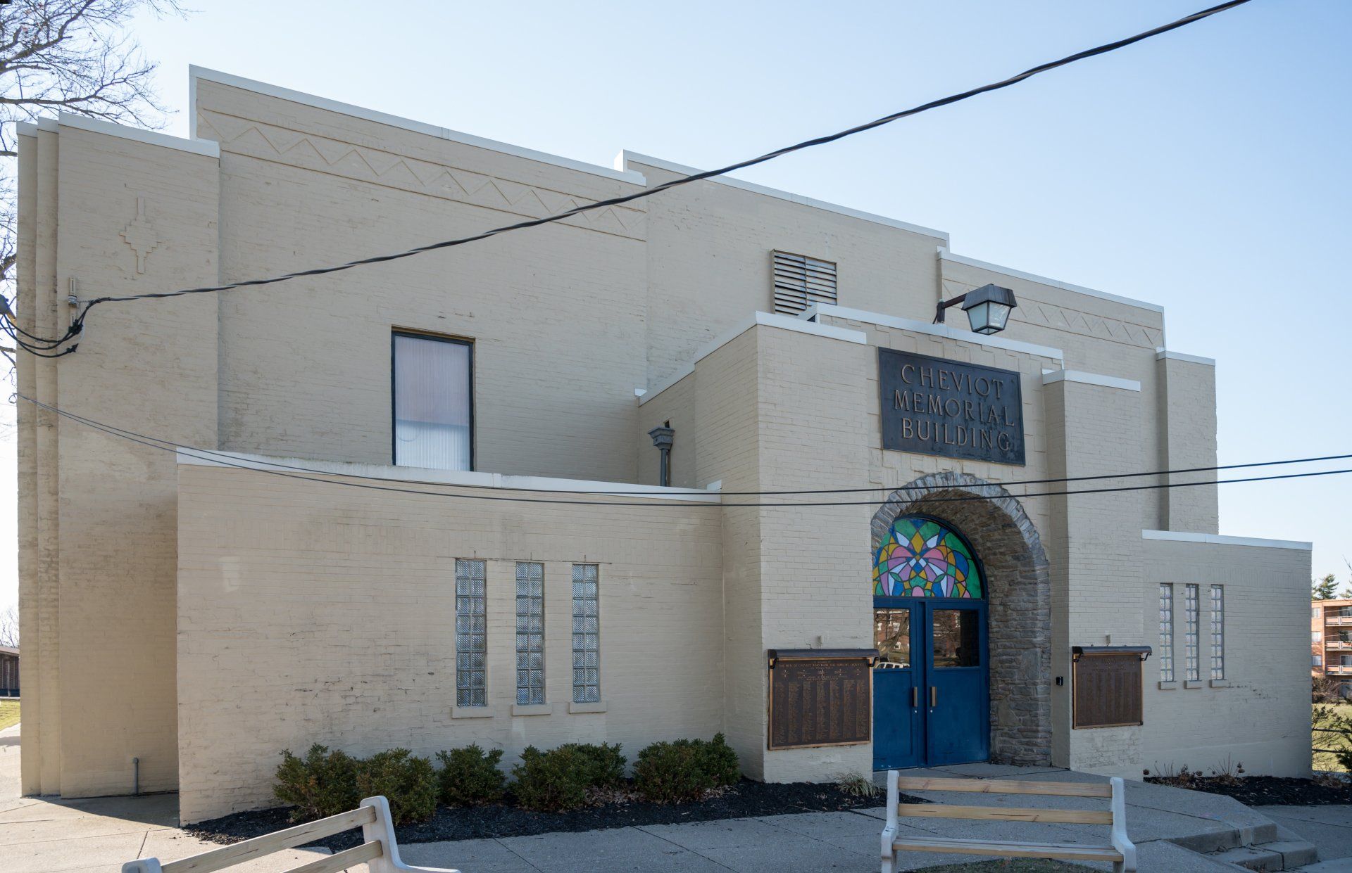 Cheviot Fieldhouse, 3729 Robb Avenue: built 1936, Howard Gillespie, architect. The geometrical façade is vertically stepped back in three tiers, emphasizing height, with central projecting entrance. Tall, narrow windows further accent verticality. The cornice is accentuated by a chevron brick pattern and the roof is barrel-vaulted. National Register of Historic Places, 2009.