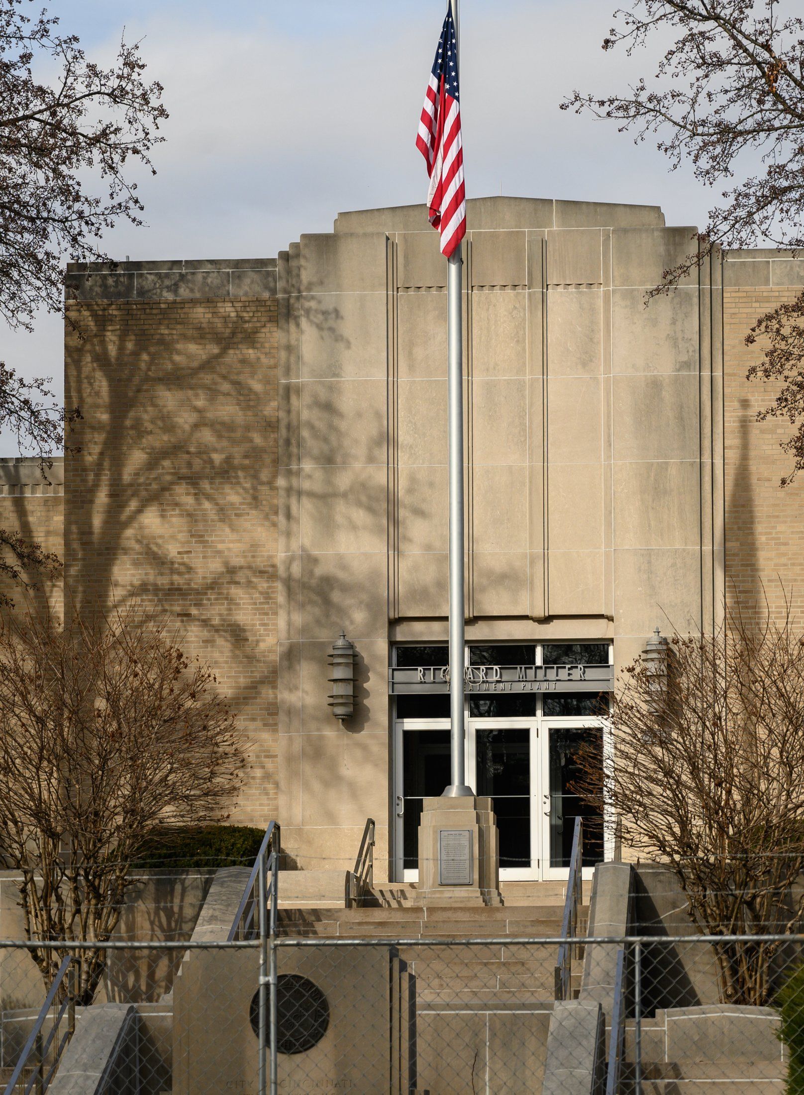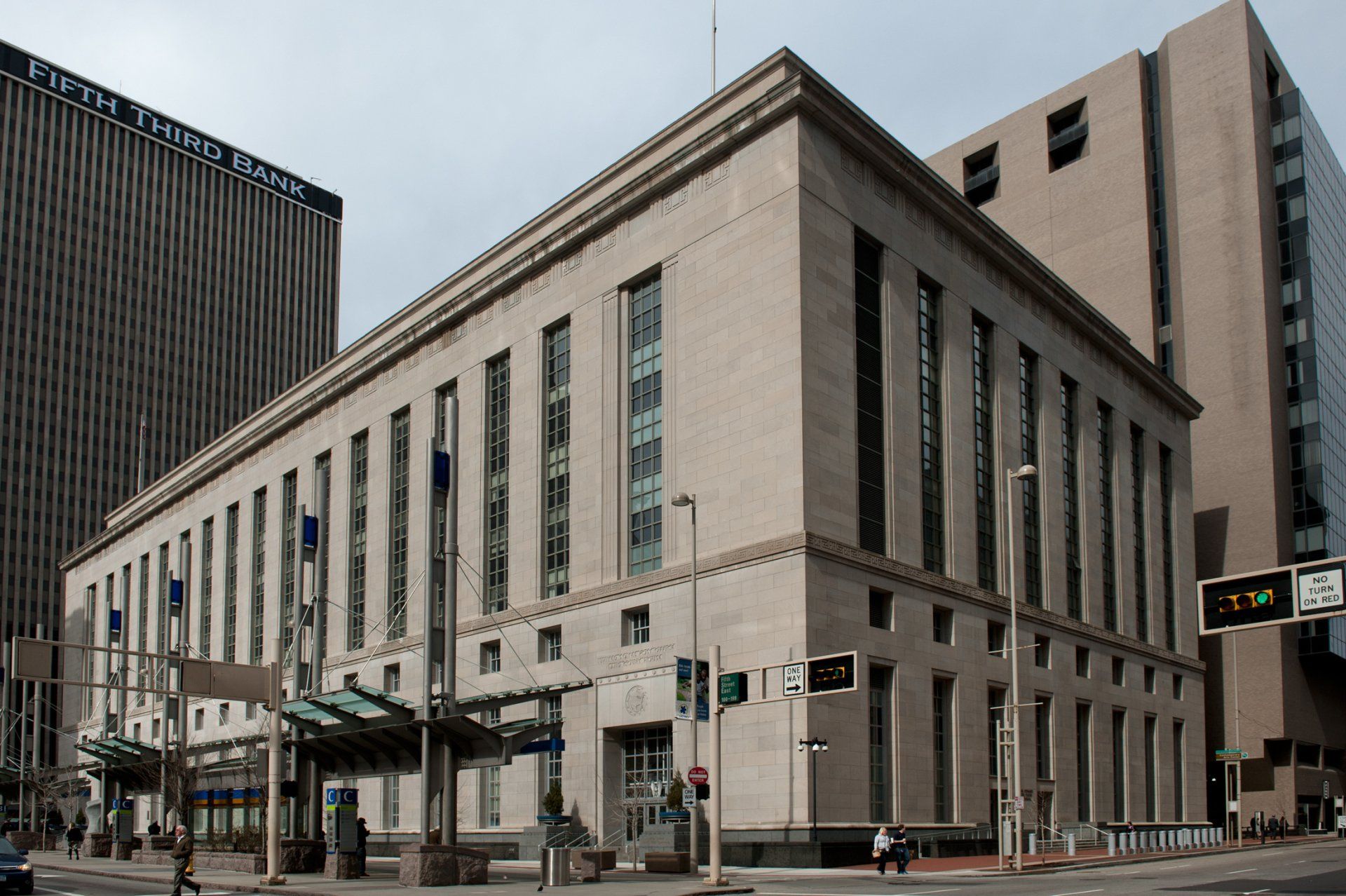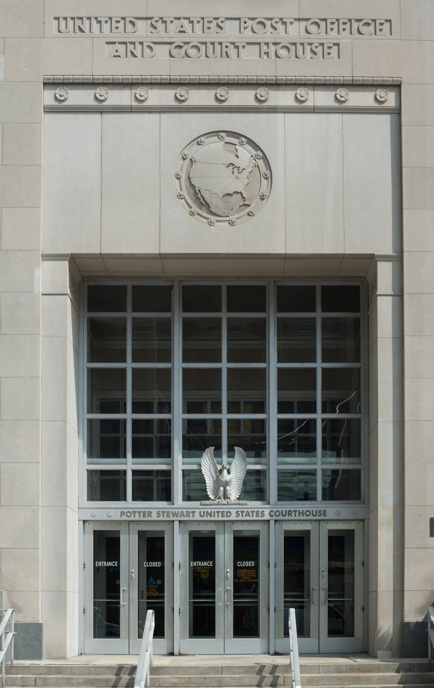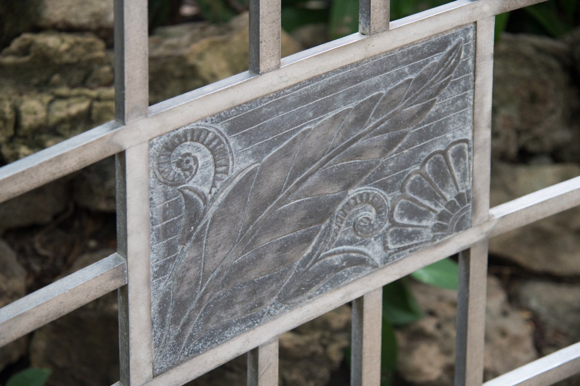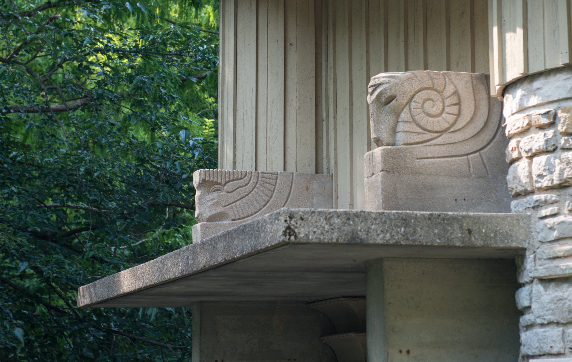 Cheviot Fieldhouse, 3729 Robb Avenue: built 1936, Howard Gillespie, architect. The geometrical façade is vertically stepped back in three tiers, emphasizing height, with central projecting entrance. Tall, narrow windows further accent verticality. The cornice is accentuated by a chevron brick pattern and the roof is barrel-vaulted. National Register of Historic Places, 2009.