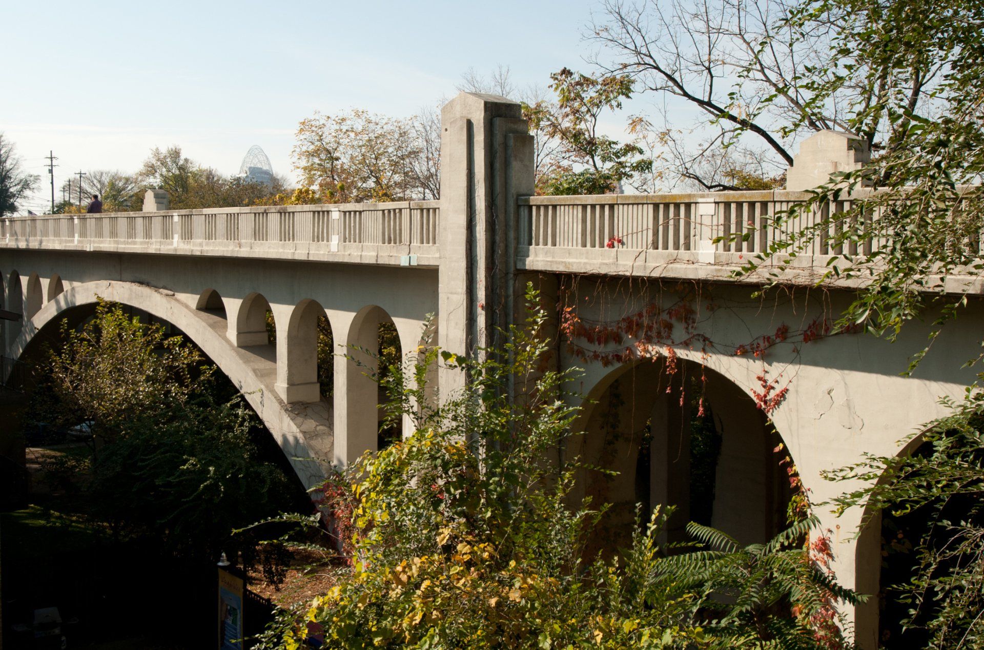 Western Hills Viaduct, a double deck, 3300 foot span across the Mill Creek valley was built in 1932 as part of the Union Terminal project.