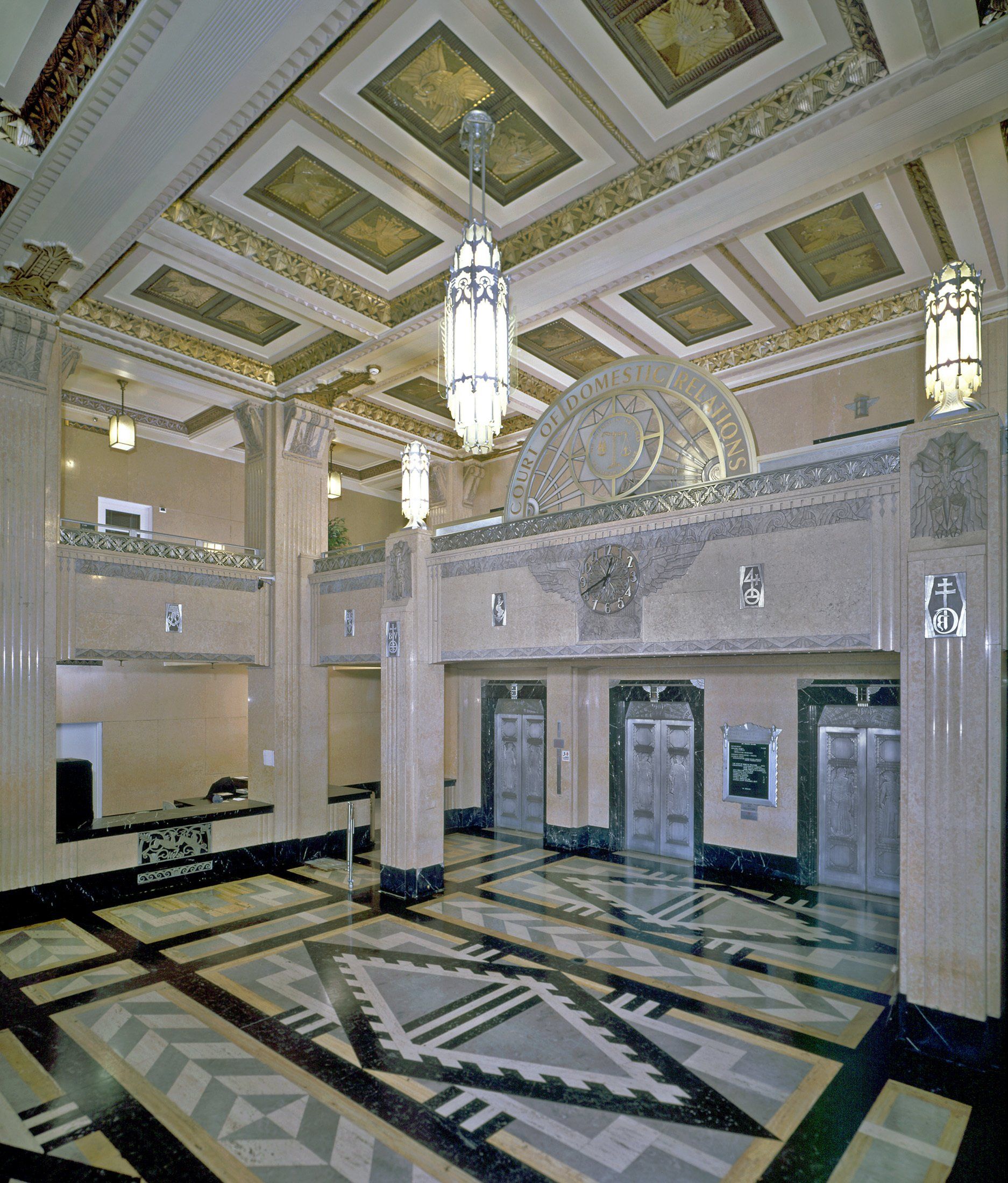 In 1958 the Times-Star merged with another afternoon newspaper, the Cincinnati Post. After the Post ceased publication in 2007, the Times-Star Building was purchased by Hamilton County and now houses Hamilton County Juvenile Court., Part of the lobby is open to the public to view these amazing details.