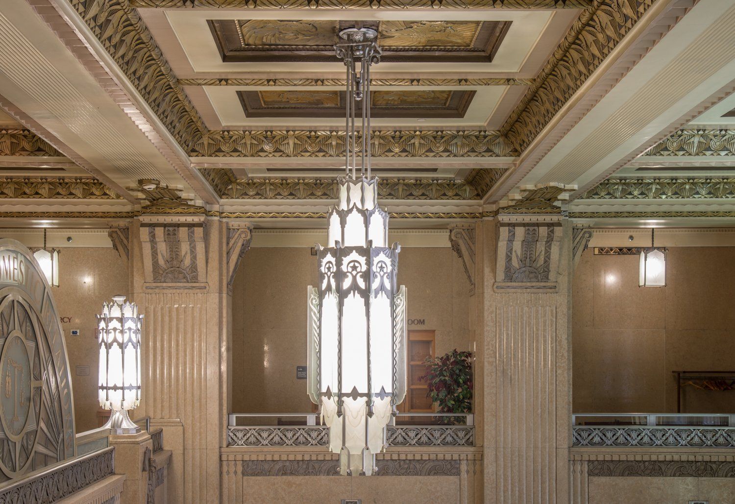 The Cincinnati Times-Star building is one of Cincinnati’s finest examples of Art Deco architecture. The exterior of the building is adorned with limestone carvings and intricate metalwork. The interior lobby is full of artistic details carved in marble, cast in plaster and molded in metal. It is a masterpiece building by the Hannaford firm that is listed in the National Register of Historic Places.